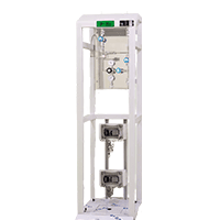 1, 雙工藝出口, 47L鋼瓶標(biāo)準(zhǔn)氣瓶供應(yīng) 2. 自動(dòng)型, Siemens PLC+觸摸屏控制 3. 自動(dòng)吹掃, 自動(dòng)切換 ,OEM緊急制動(dòng)按鈕 4. 帶噴淋,IR/UV火焰探測(cè)器 5. 氣柜抽風(fēng)配置負(fù)壓表 6. 氣體偵測(cè)報(bào)警系統(tǒng) 7. 真空發(fā)生器,高低壓排氣, 8. 高低壓端壓力傳感器及壓力表 9.左右盤面單獨(dú)氦檢漏閥 10.配鋼瓶秤